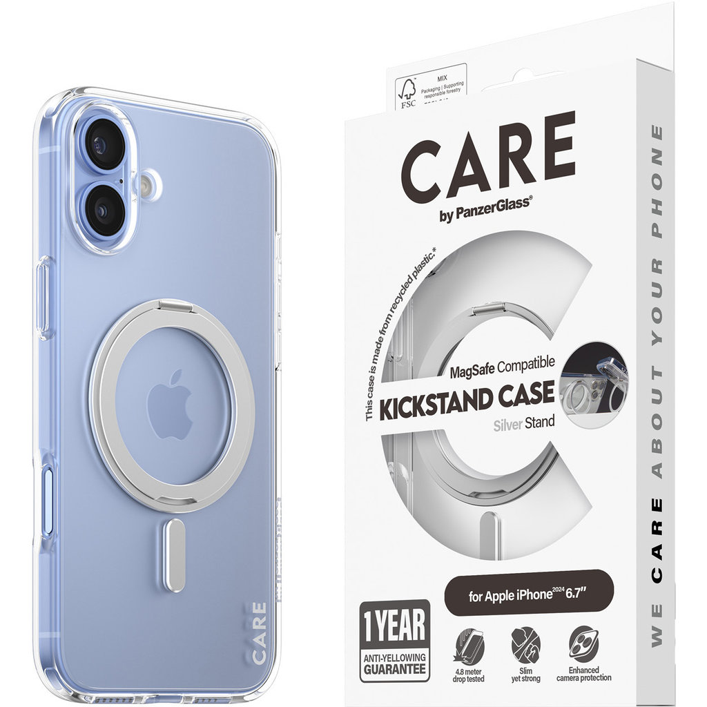 CARE by PanzerGlass Feature Case Transparent met Kickstand Onbevreesd modieus! + Milieuvriendelijk: gemaakt van gerecycled kunststof. + Soft-touch grip: zachte afwerking voelt prettig aan.