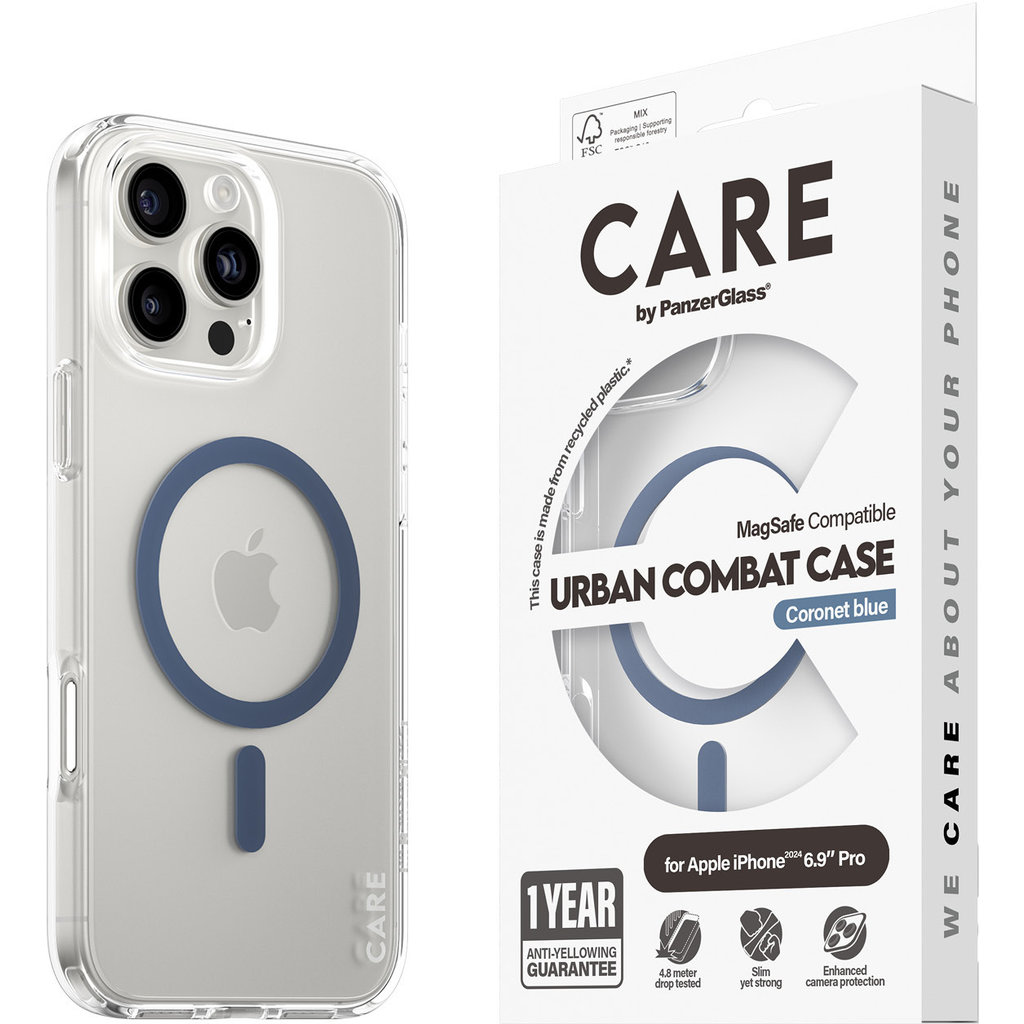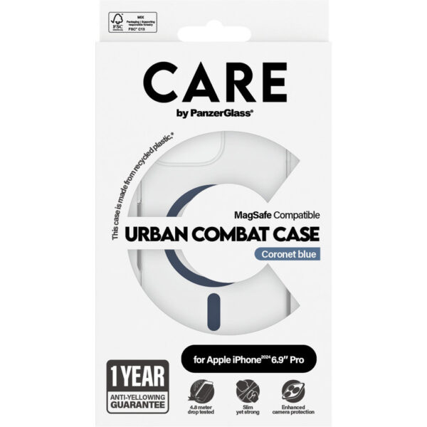 CARE by PanzerGlass Flagship Case Transparent Urban Combat w. Blue MagSafe iPhone ’24 6.9″ Pro