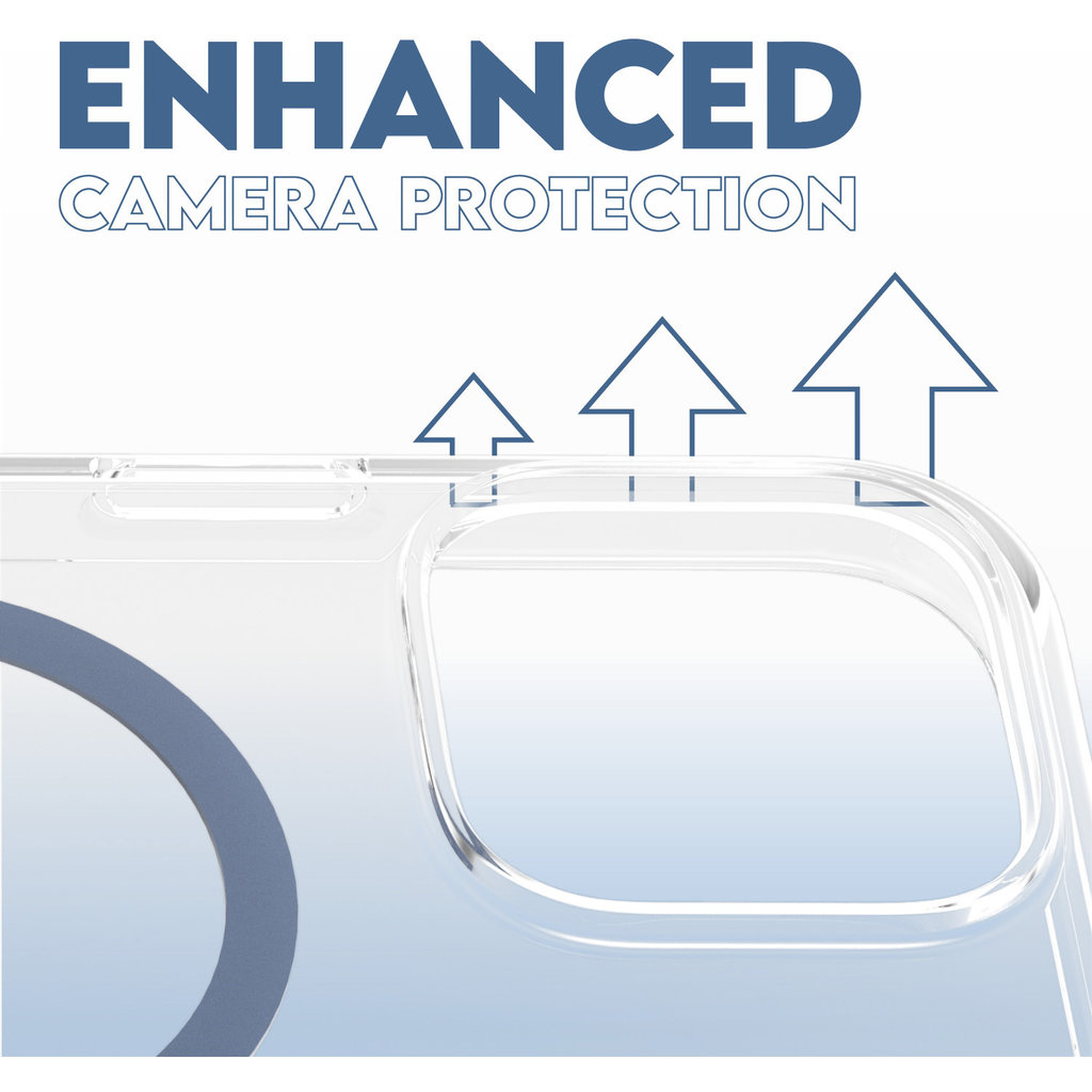 + Opstaande rand: extra bescherming bij de camera.