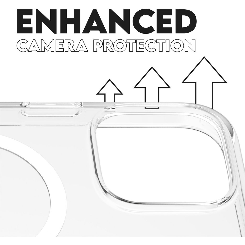 + Opstaande rand: extra bescherming bij de camera.