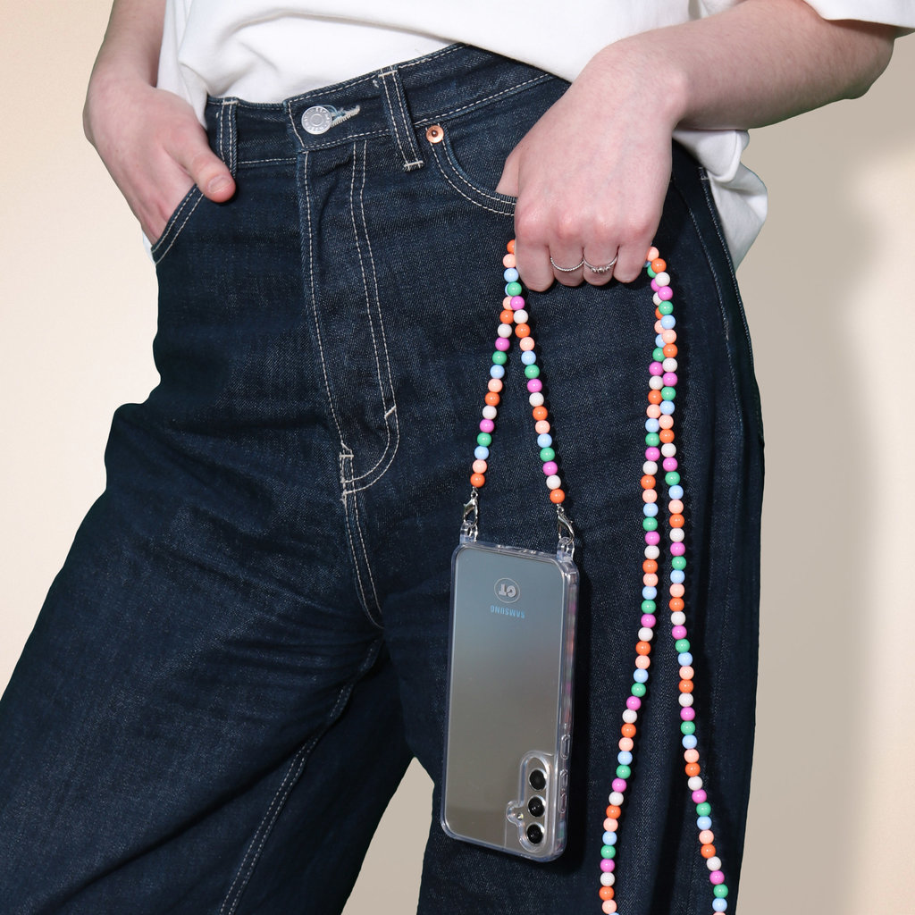 Combineer en creer kleuren en parels die bij elke outfit passen. Varieer hoe je je smartphone draagt, van crossbody met het lange koord tot armband om je pols. Wij zijn fan!