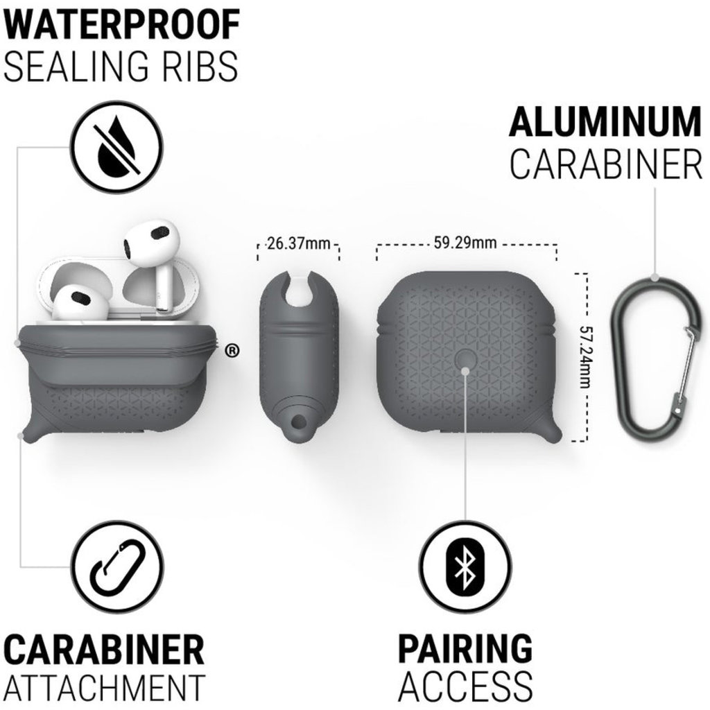 - Beschermd tegen diefstal: klik de Airpods 3e gen. eenvoudig aan een rugzak, riem of handtas
