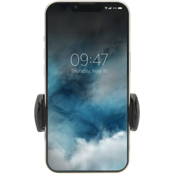 + Klem met stevig veersysteem. + 360 Graden te roteren. + Geschikt voor (bijna) alle telefoons. + Smartphones met beschermhoesje passen ook.